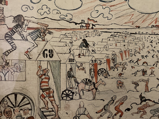 C’est dans le contexte du symbolisme que se comprennent le mieux les grands thèmes ensoriens : le masque, le Christ, le squelette, l’autoportrait ; mais leur portée dépasse les limites historiques d’un mouvement littéraire et artistique tout en adhérant étroitement à la subjectivité de l’artiste. Éros – les problèmes sexuels d’Ensor – et Thanatos – la terreur et la fascination de la mort dont Ensor est la proie – imprègnent tout l’œuvre. Le masque, d’abord ornement, ne tarde pas à devenir humain. Être dérisoire et terrifiant, il modifie les limites de l’individu et fait régner l’ambiguïté. Des Masques scandalisés (1883) aux Masques singuliers (1891), en passant par l’Étonnement du masque Wouse (1889), La Vieille aux masques et le Peintre entouré de masques, on en vient aux masques de chair des Péchés capitaux et des Bons Juges. Un tournant psychologique capital est indiqué dans une série de dessins, Les Auréoles du Christ ou les Sensibilités de la lumière (1885-1886). La figure mythique du Christ correspond au moi idéal ensorien. L’Entrée du Christ à Jérusalem (dessin) mène à L’Entrée du Christ à Bruxelles (1888), l’œuvre la plus retentissante d’Ensor, bouffonnerie ubuesque, mais aussi allégorie symboliste et manifeste de la peinture moderne. Quant aux squelettes, qui trahissent l’obsession de la mort, ils se mêlent aux masques, ils se font démons pour tourmenter le Crucifié, ils se juxtaposent aux autoportraits, mais ils sont aussi des parias misérables autour d’un poêle éteint (Squelettes voulant se chauffer autour d’un poêle, 1889). Les sujets satiriques et fantaisistes sont également légion. Des tableaux charges s’en prennent aux critiques d’art, aux médecins, aux gendarmes, avec une hargne grossière, presque triviale. En vieillissant, Ensor sera tenté par le théâtre et composera la musique, les costumes et les décors d’un opéra-ballet, La Gamme d’amour. Tout au long de sa vie, il fut aussi paysagiste, peintre de la mer et des dunes. Paradoxalement, ses plus beaux paysages luministes sont des eaux-fortes. Son œuvre gravé compte d’ailleurs cent trente-trois planches, à propos desquelles on peut évoquer Callot et Goya. [Francine-Claire LEGRAND, « ENSOR JAMES - (1860-1949) », Encyclopædia Universalis [en ligne], consulté le 27 novembre 2022. URL : https://www.universalis.fr/encyclopedie/james-ensor/]