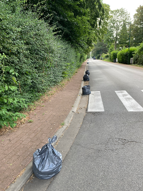 Les sacs-poubelle du Petit Poucet (les éboueurs inauguraient ce jour-là une nouvelle technique de collecte)